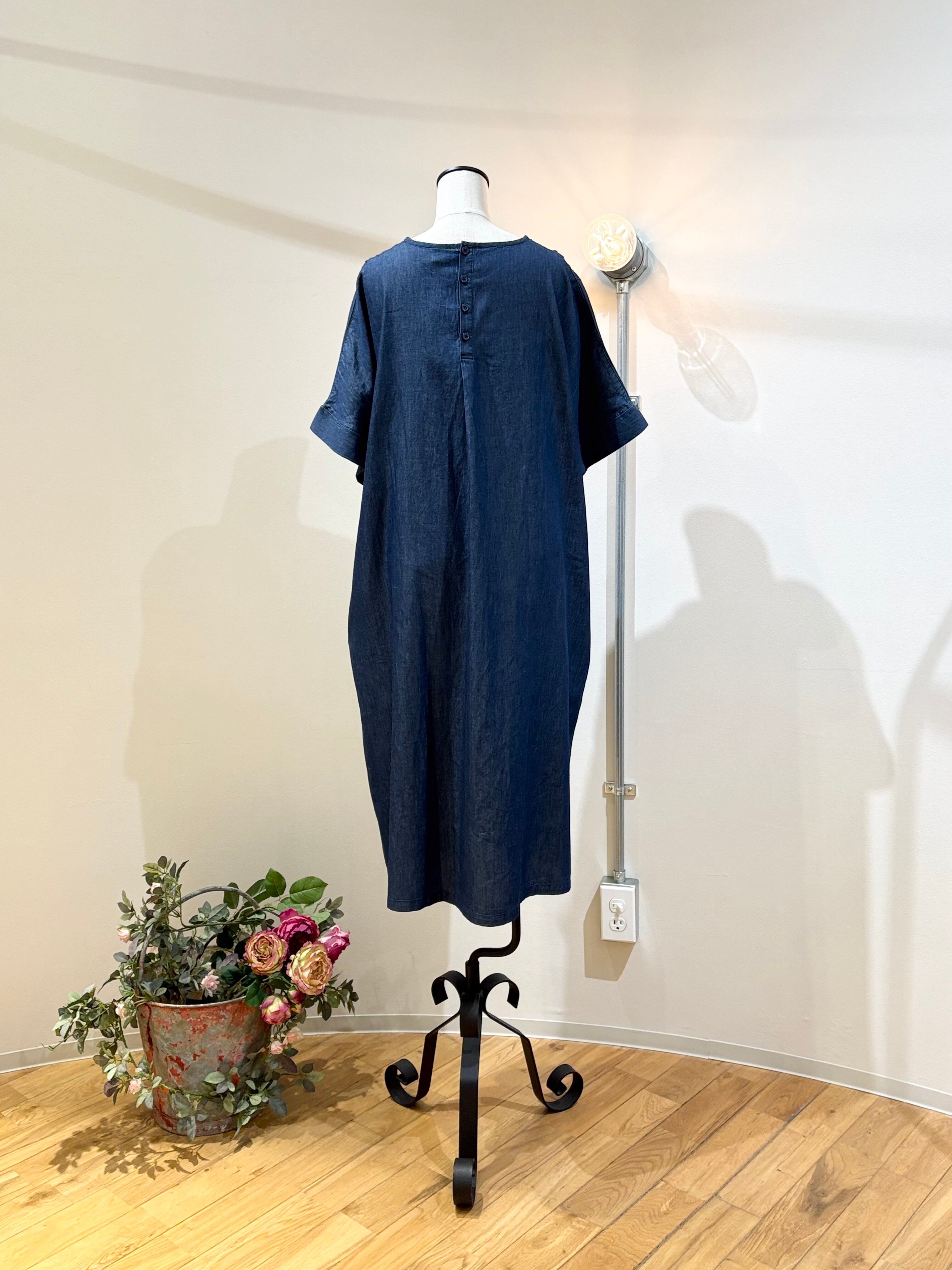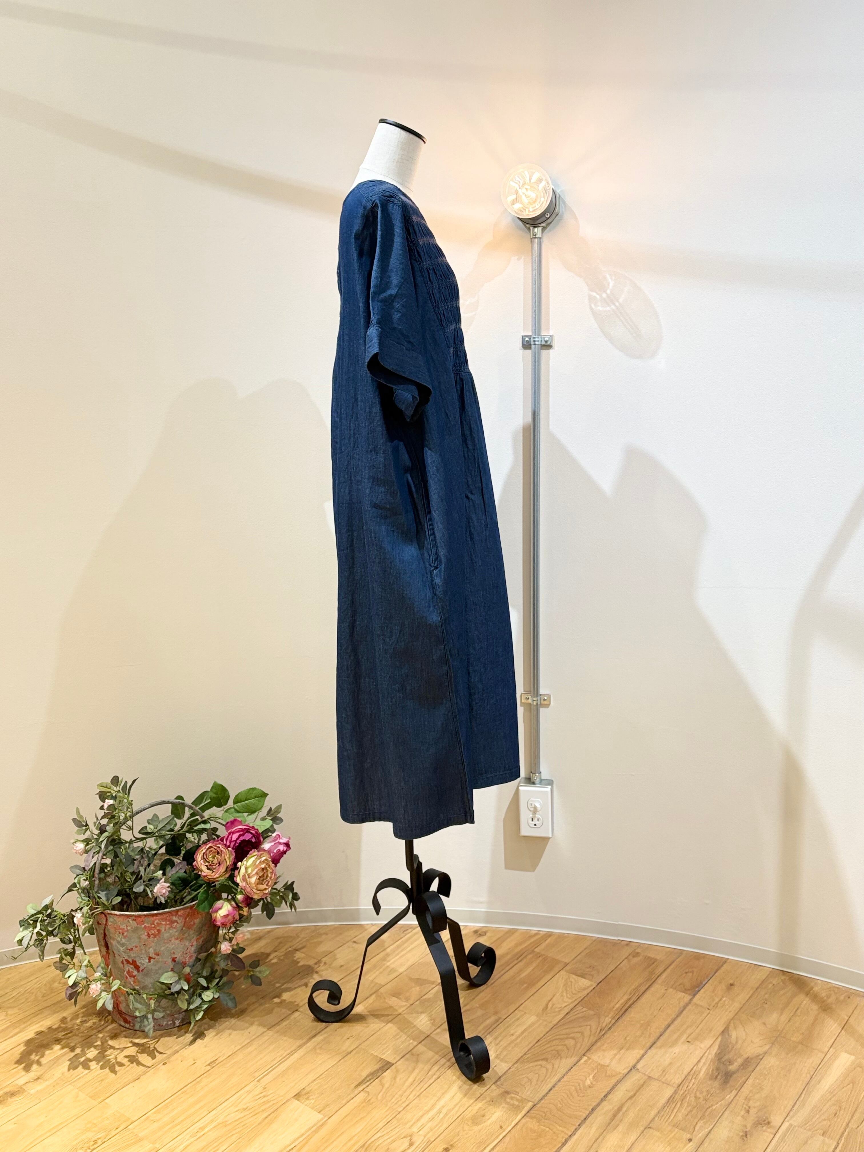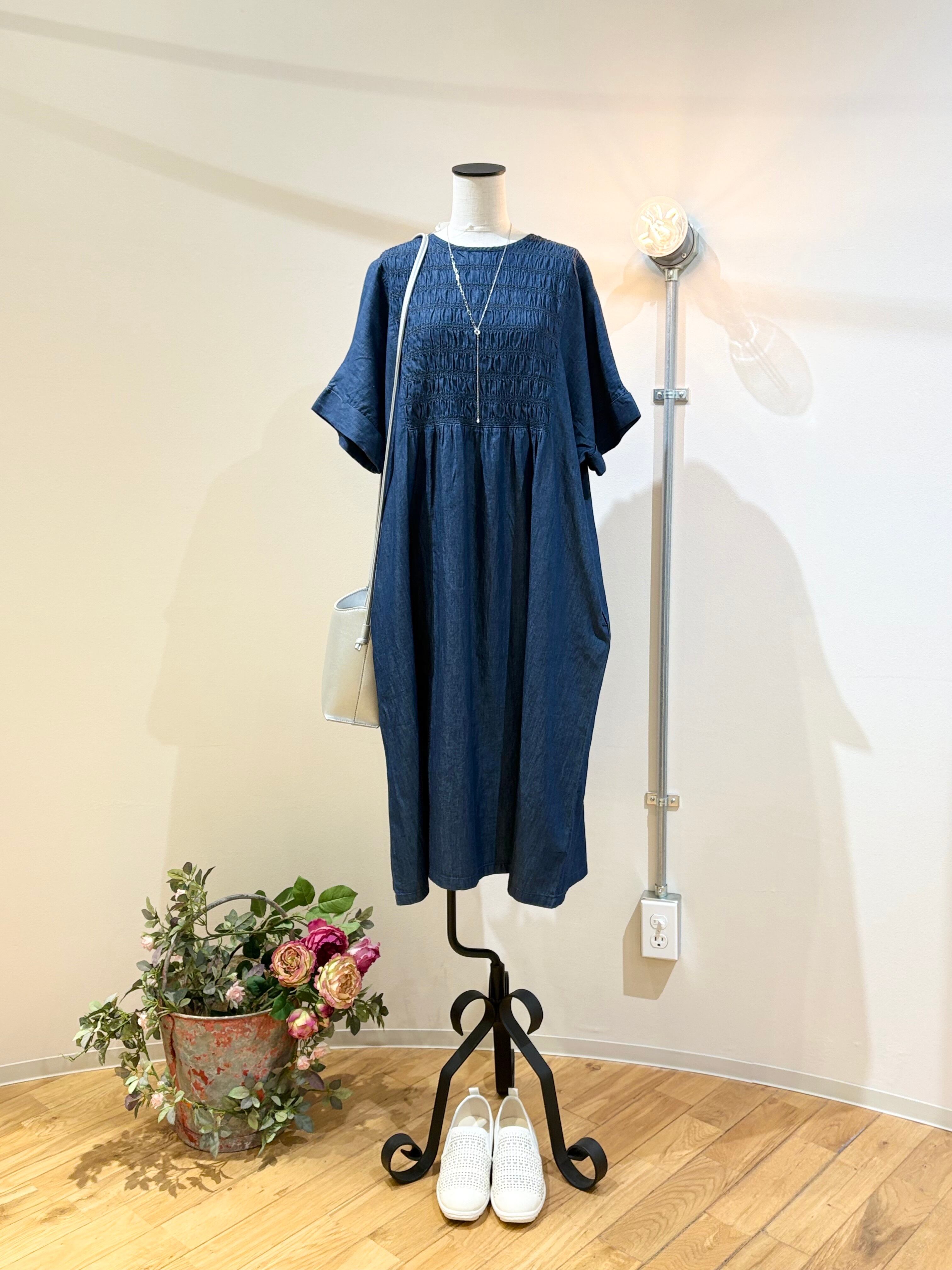 スモッキングデニムワンピース